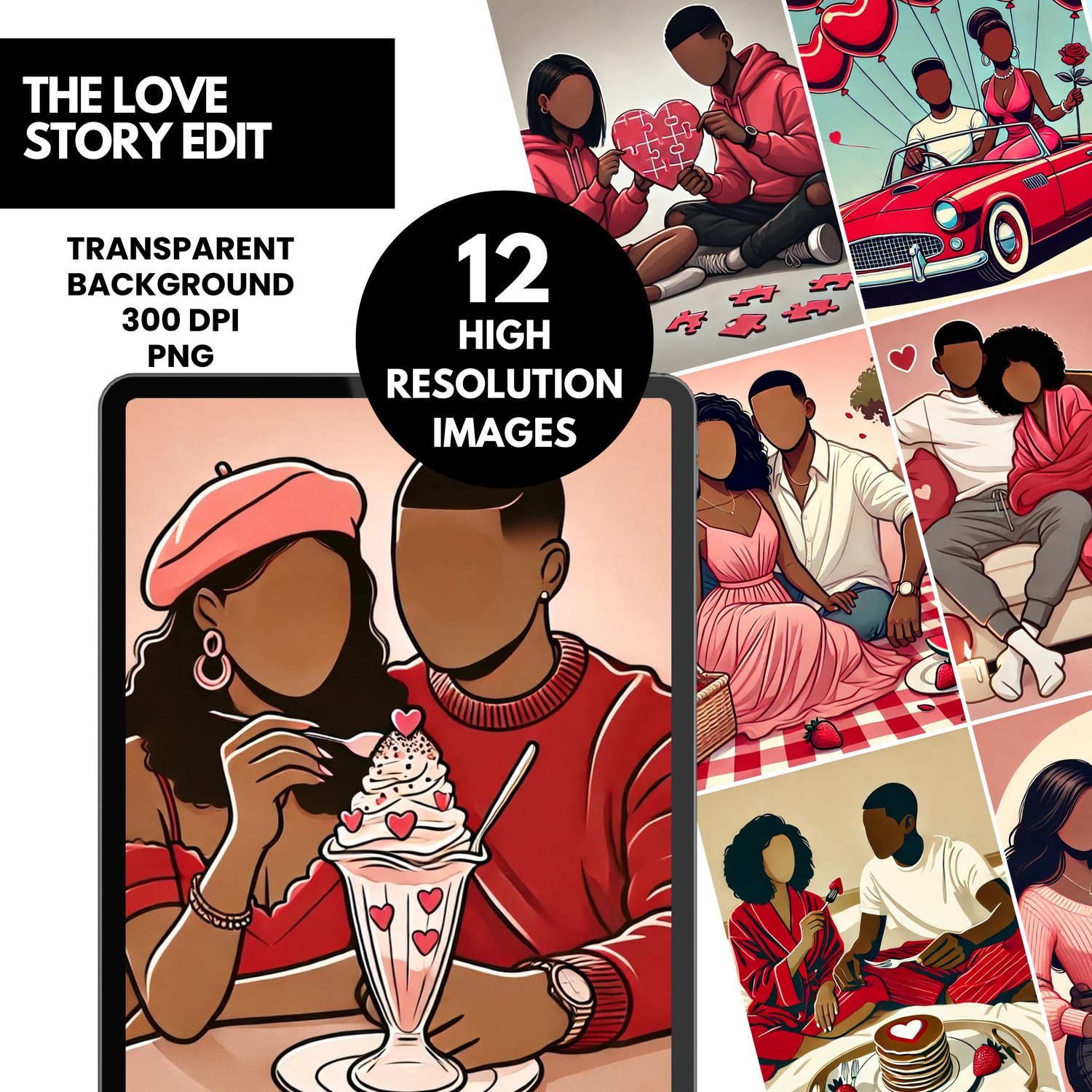 The Love Story Edit | Black Couple Clipart| Romantic Valentine’s Day PNGs | African American Love Art | Couple Aesthetic Illustrations